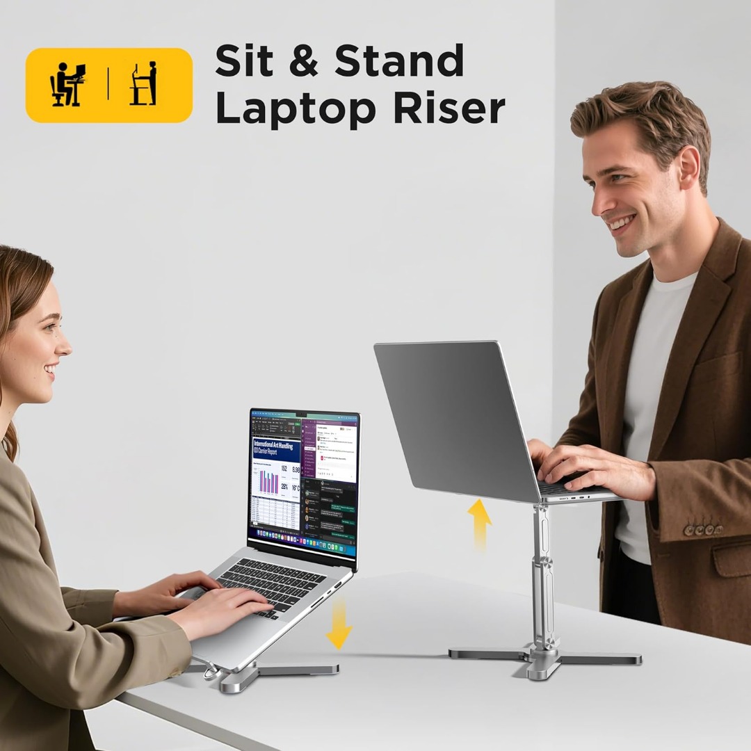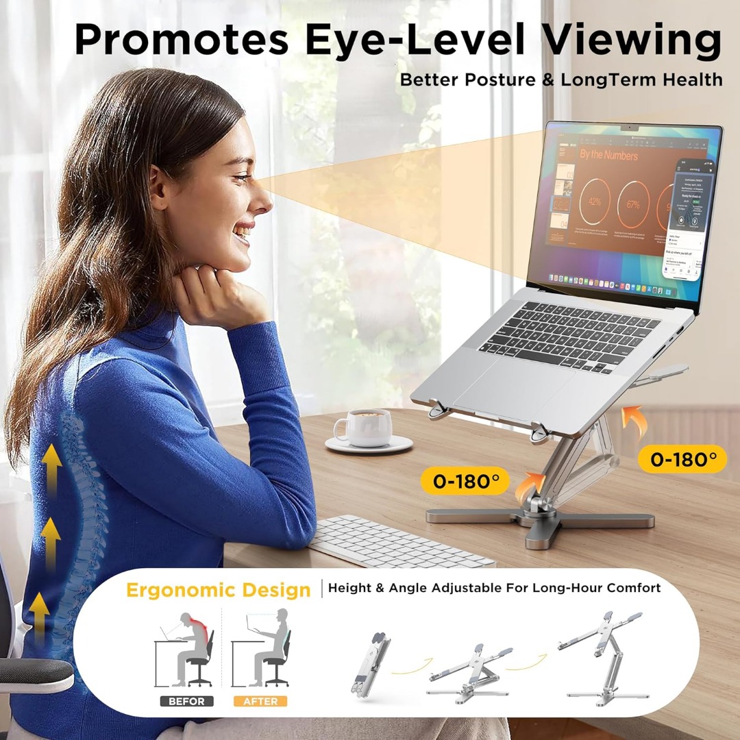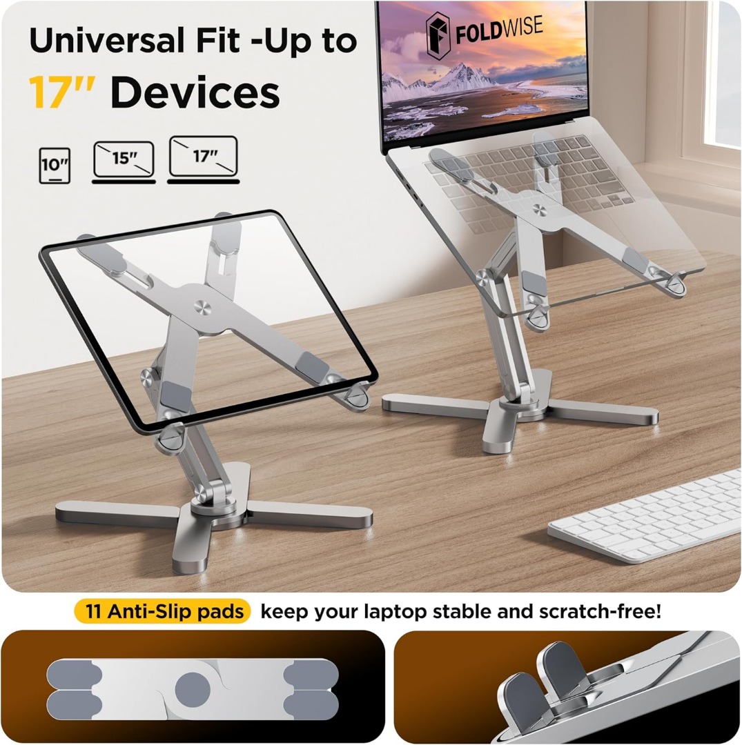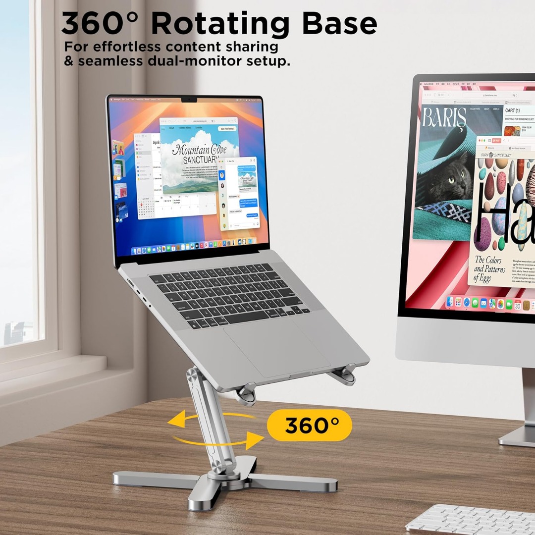 Laptop Stand X, fits laptops up to 17″ and supports up to 10kg. Features a 360° rotating base for easy angle adjustment. Strong, portable, and perfect for ergonomic use at home or office.